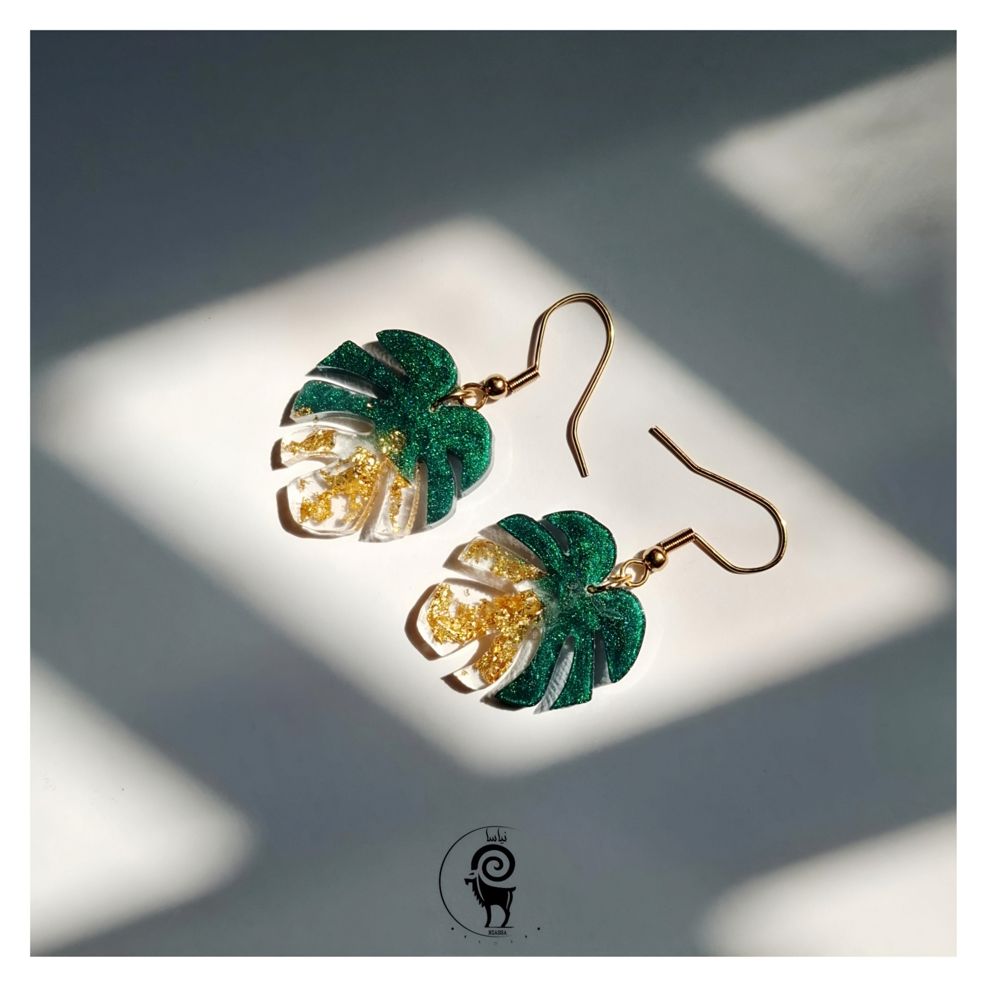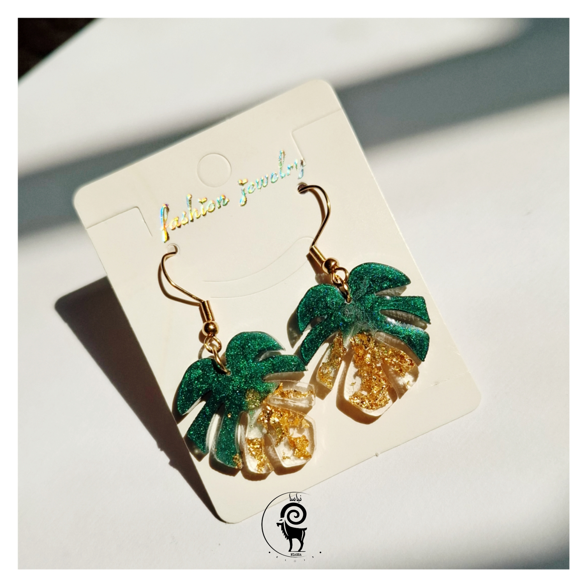 هر گوشواره با رزین شفاف و ورق طلای واقعی ساخته شده و شکل برگ انجیریش حس ظرافت و آرامش رو بهت میده