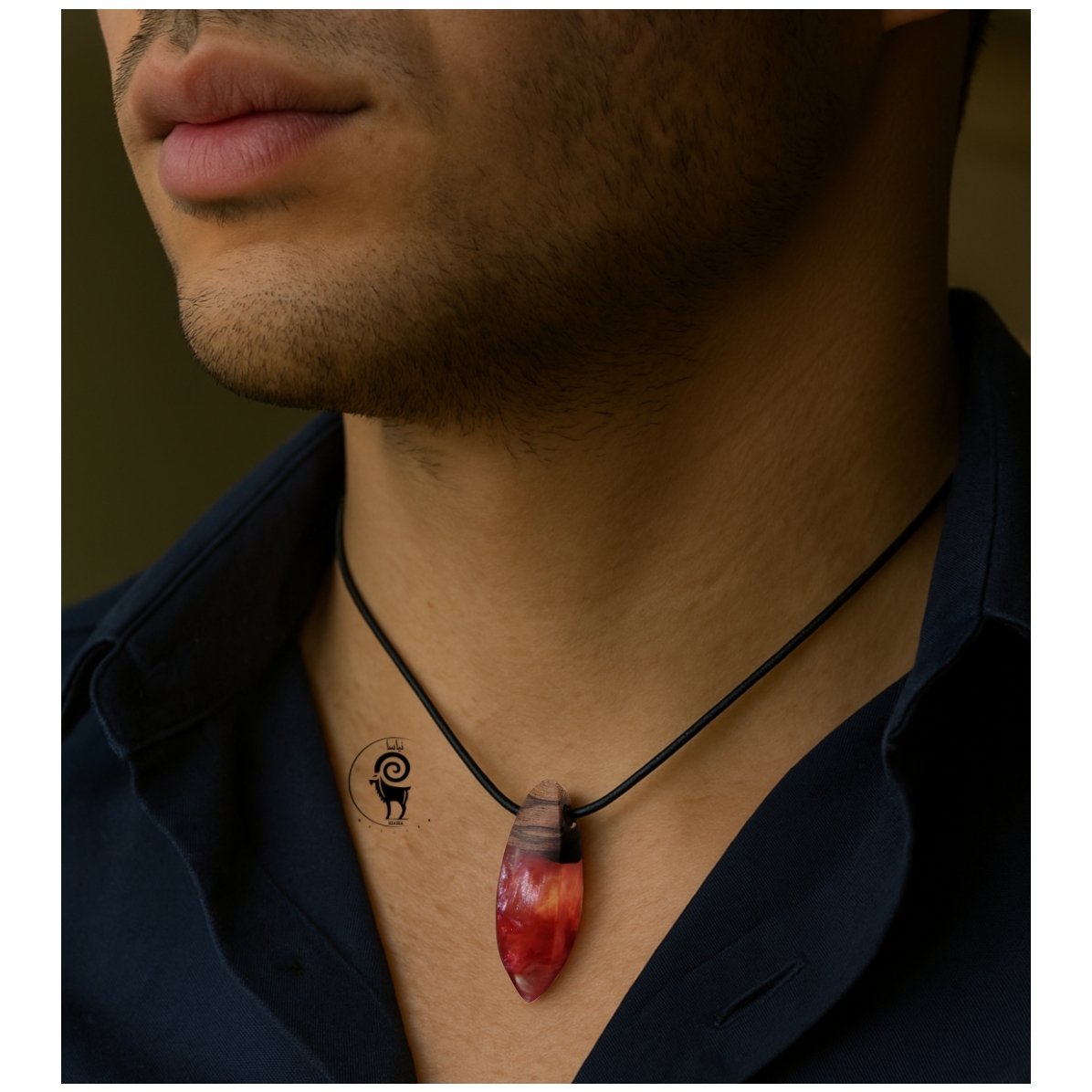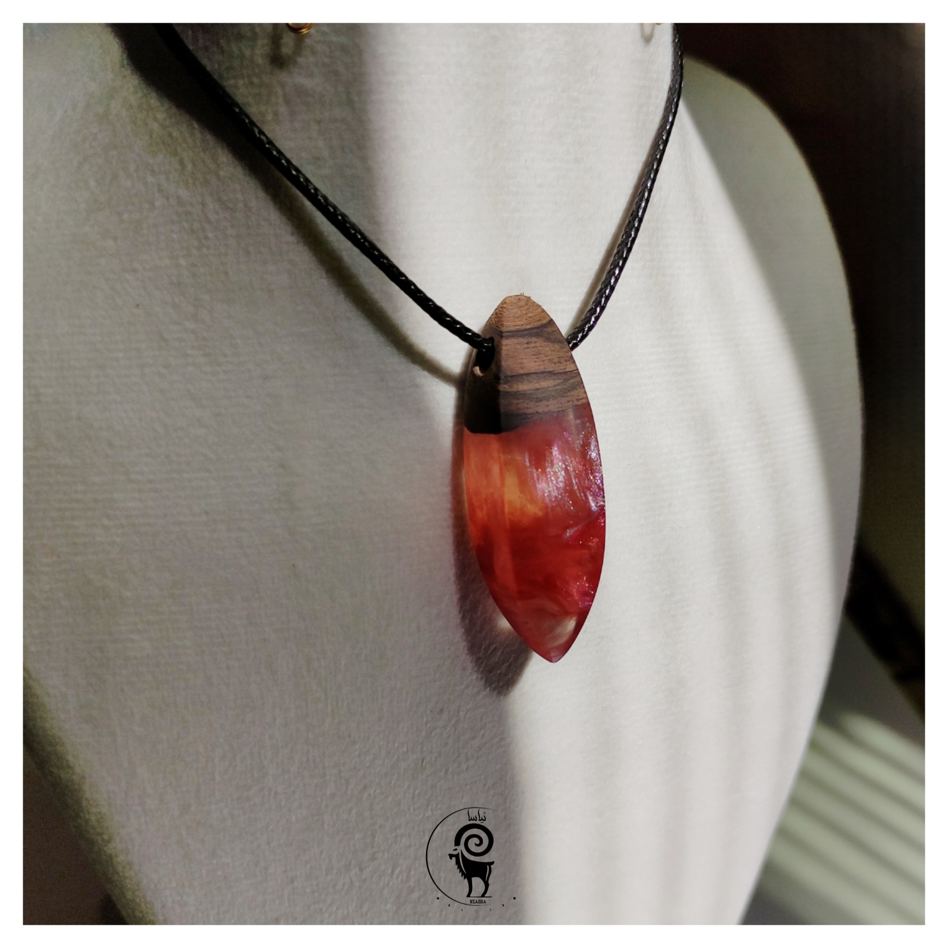 گردنبند آتش ترکیبی از زیبایی طبیعی چوب و درخشش رزین است؛ اثری دستساز که با الهام از شعلههای آتش طراحی شده تا گرما، انرژی و قدرت درونی را به شما یادآوری کند